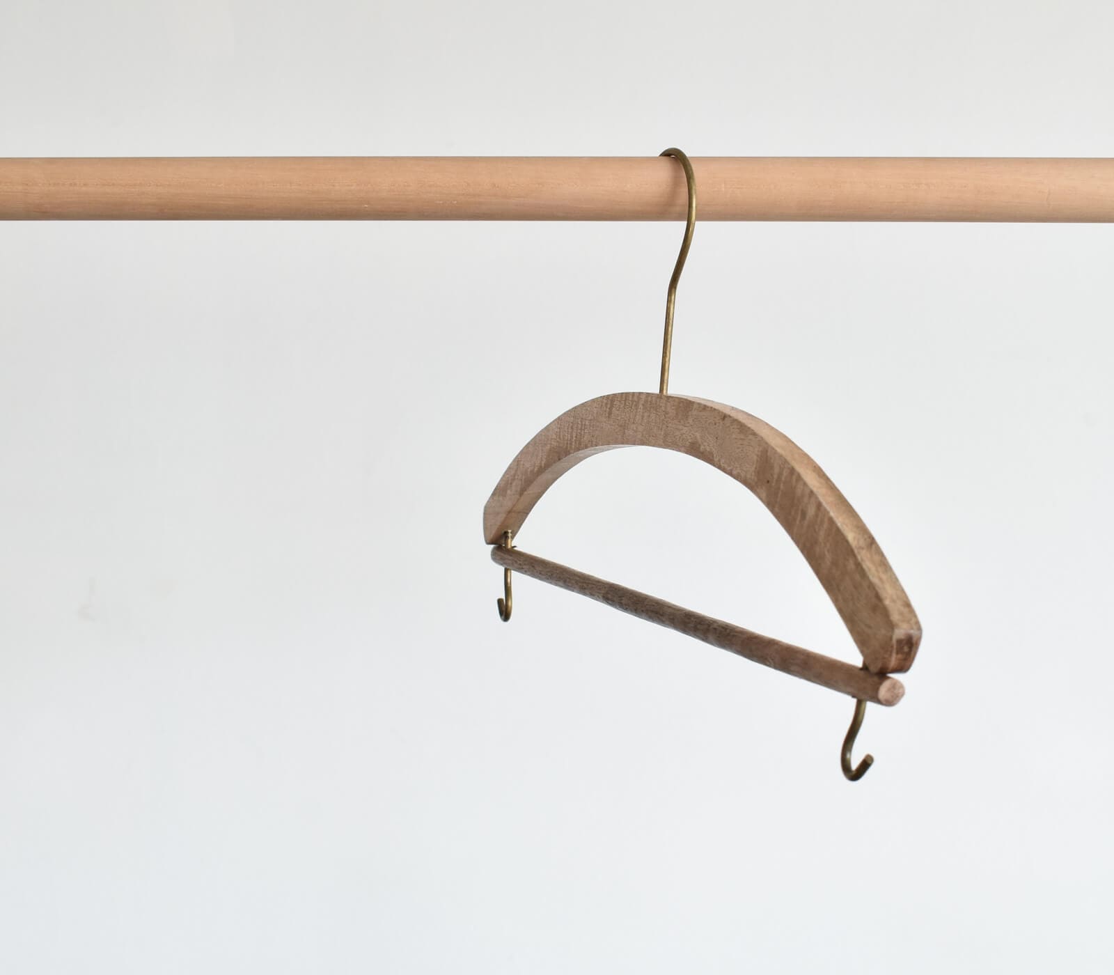 fog linen workさんのハンガーはキラリと品のある真鍮と、古材のような風合いのマンゴーウッドでできていて、フレンチアンティークのような素敵さと魅力があります。